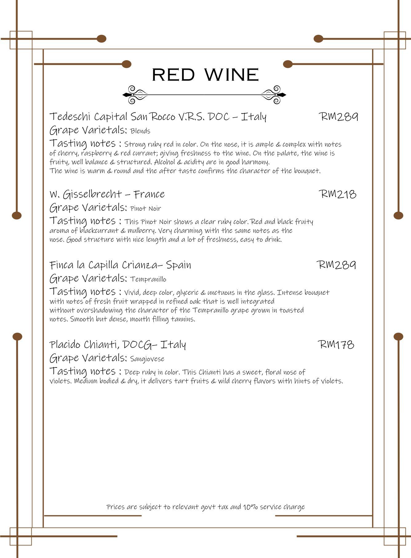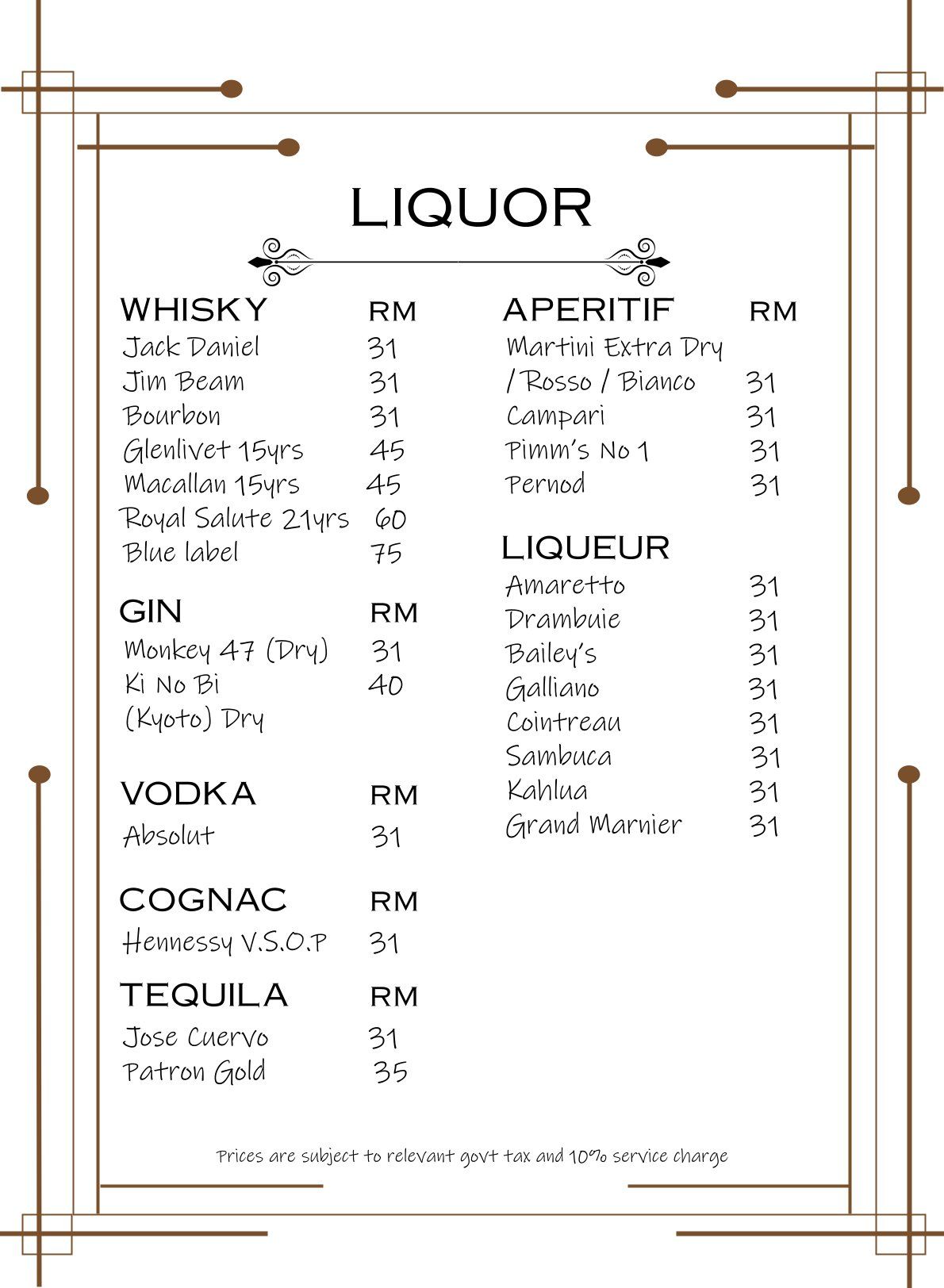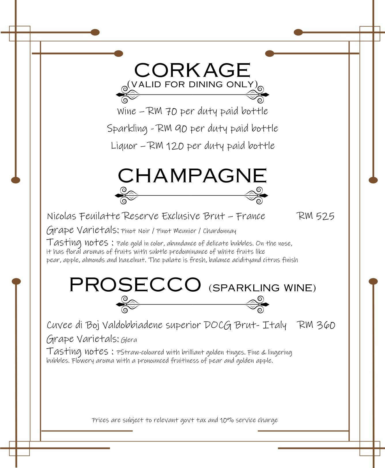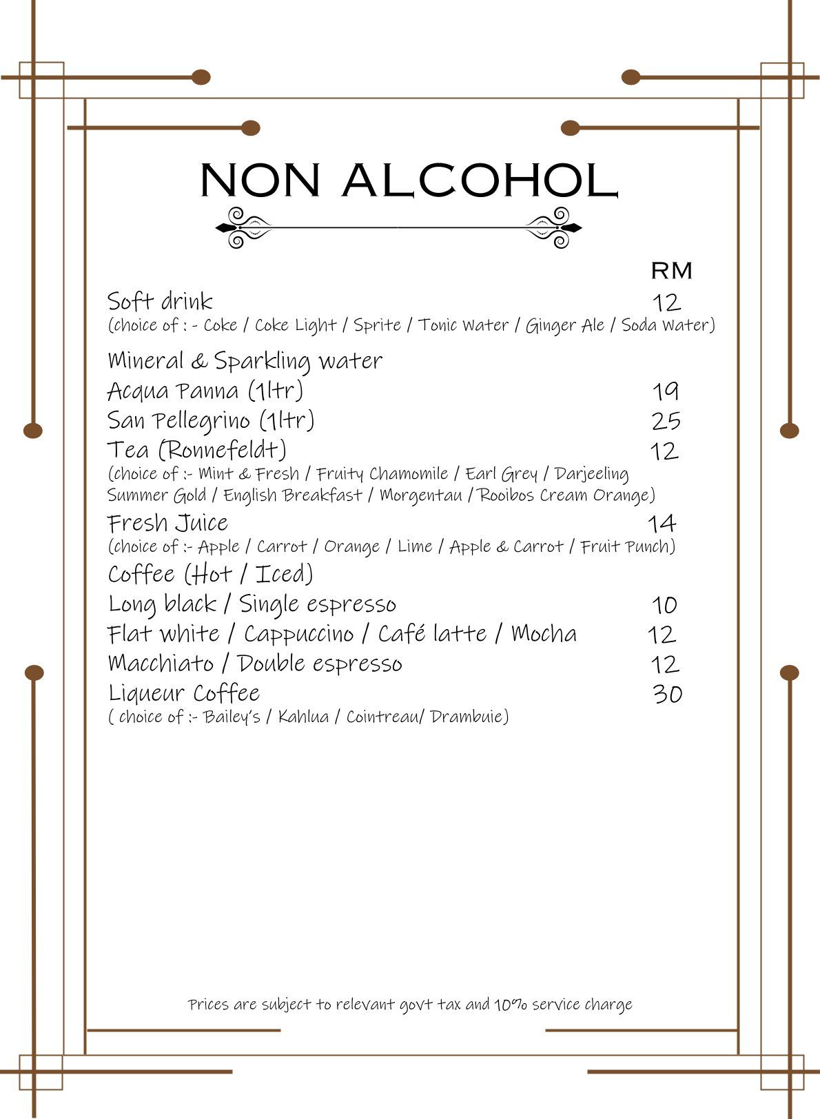PRICES ARE SUBJECT TO 10% SERVICE CHARGE AND 6% SALES AND SERVICE TAX UNLESS OTHERWISE STATED