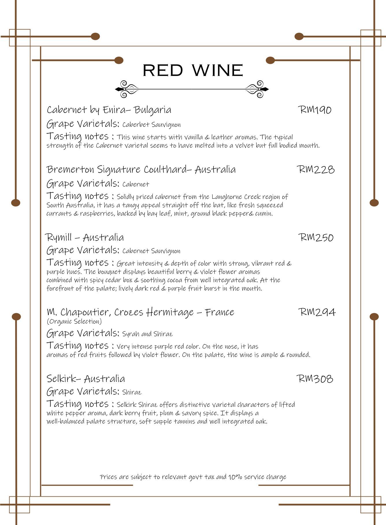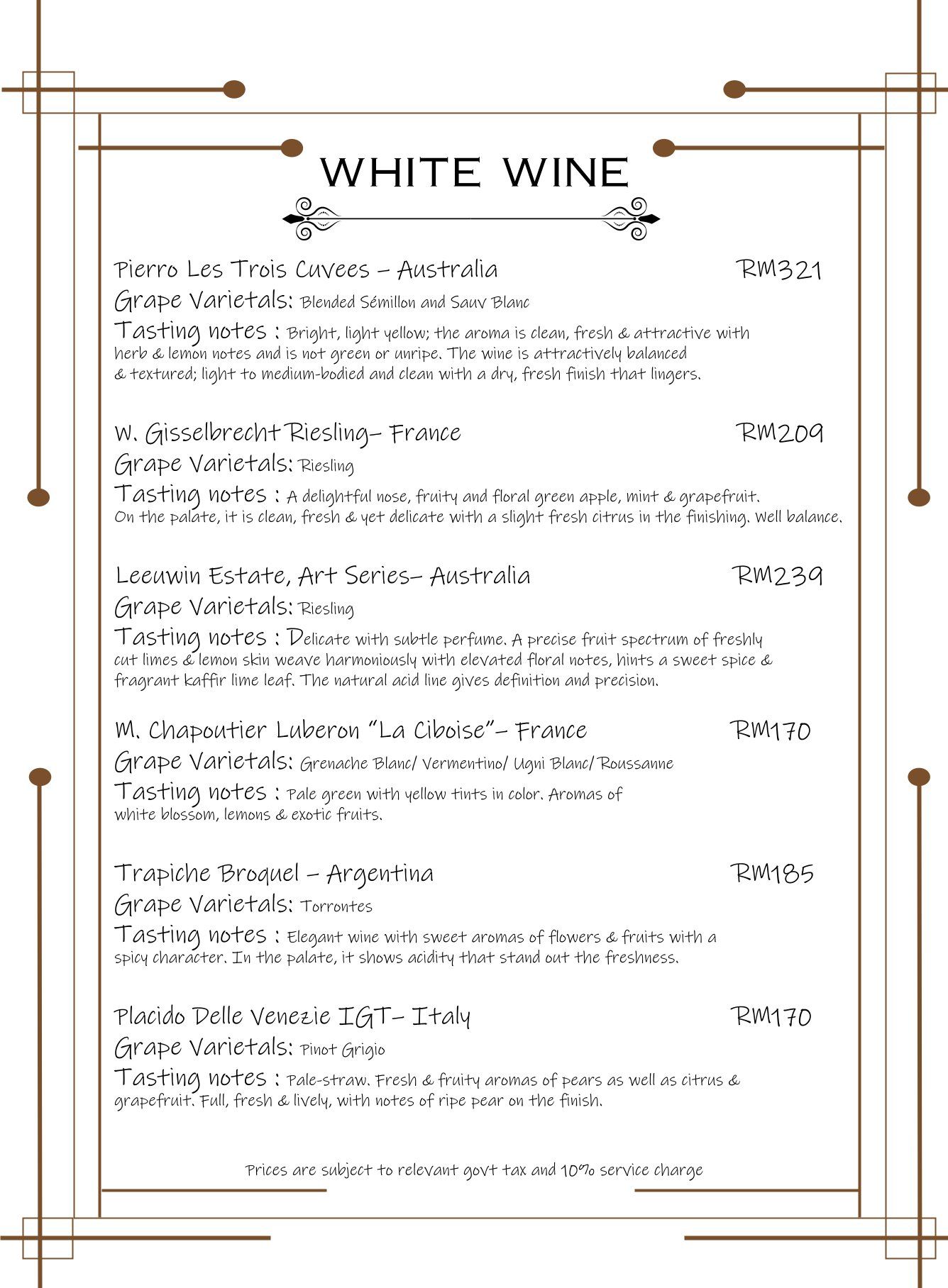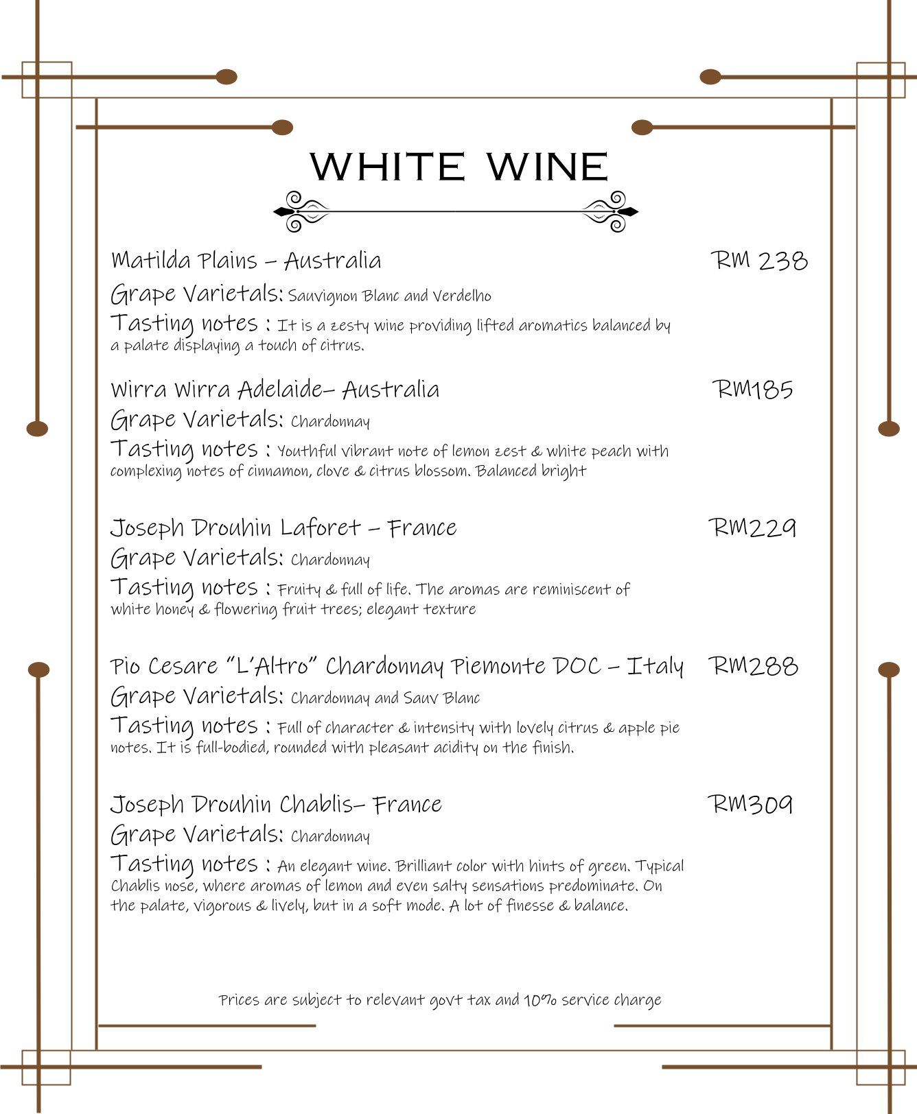 PRICES ARE SUBJECT TO 10% SERVICE CHARGE AND 6% SALES AND SERVICE TAX UNLESS OTHERWISE STATED