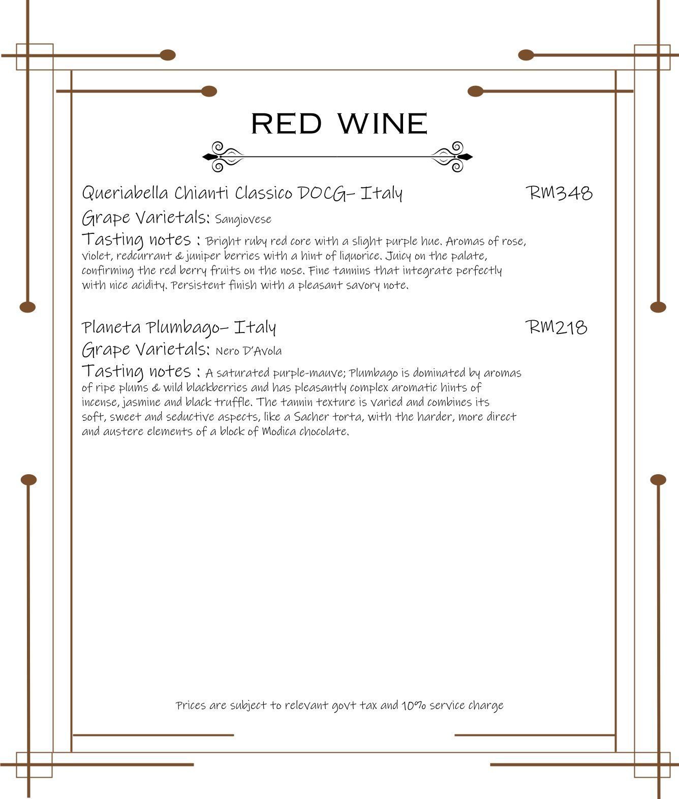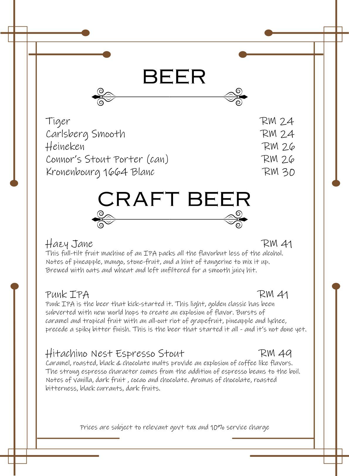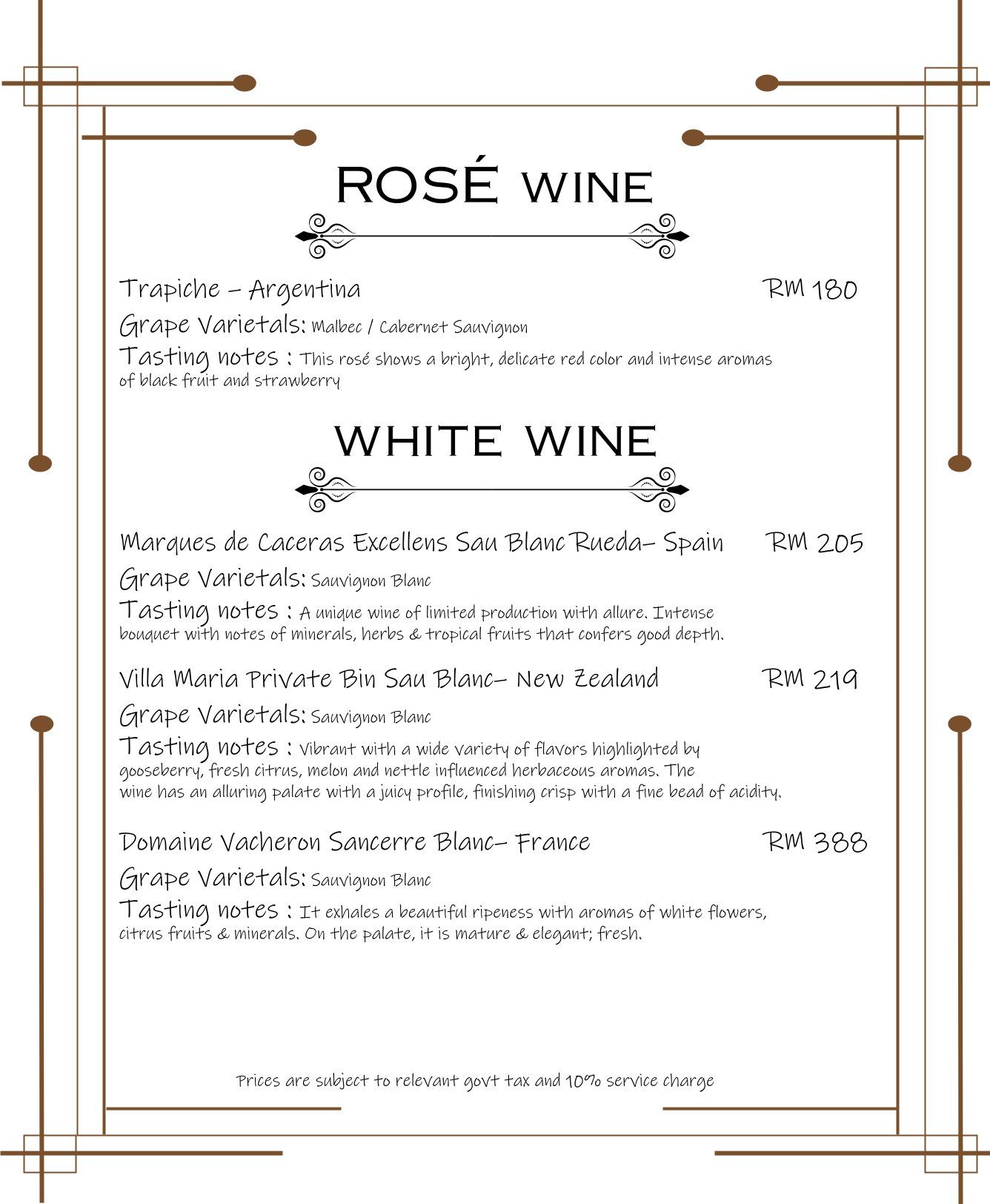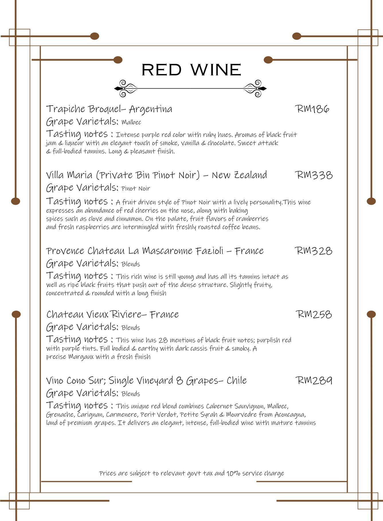 PRICES ARE SUBJECT TO 10% SERVICE CHARGE AND 6% SALES AND SERVICE TAX UNLESS OTHERWISE STATED